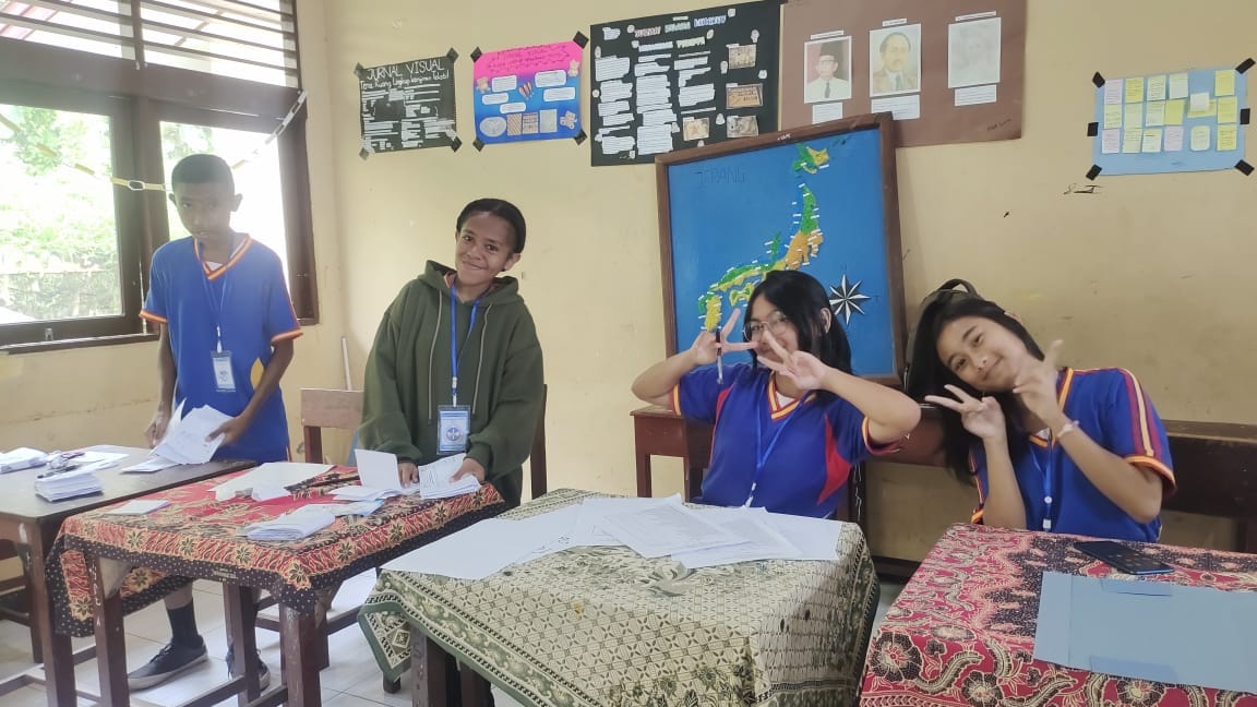 Semua kegiatan ini dilakukan oleh siswa, di antara menyiapkan kertas suara, kotak suara, dan bilik suara.